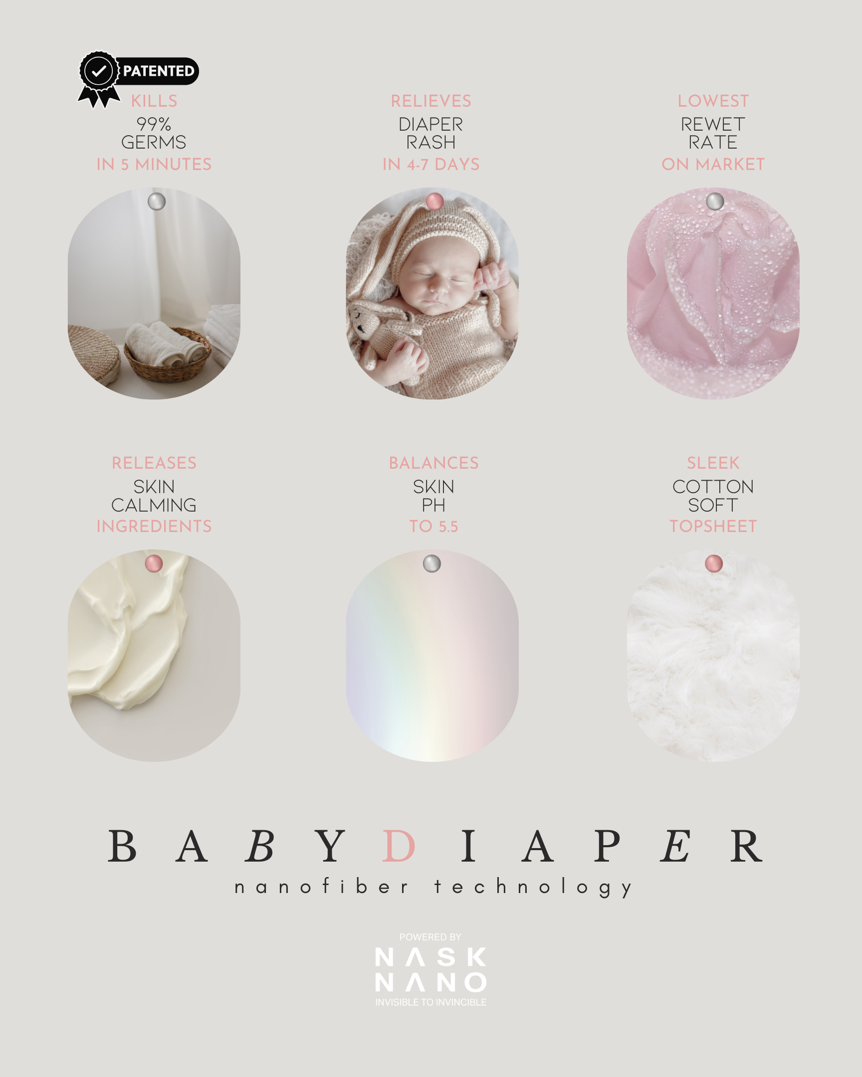 NASK Nanofiber Baby Diaper are designed to keep your baby's delicate skin healthy and free from diaper rash.